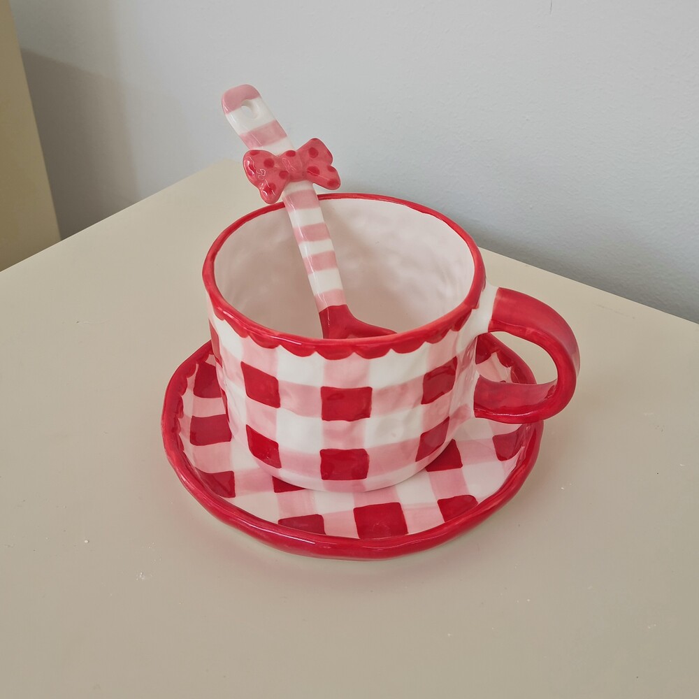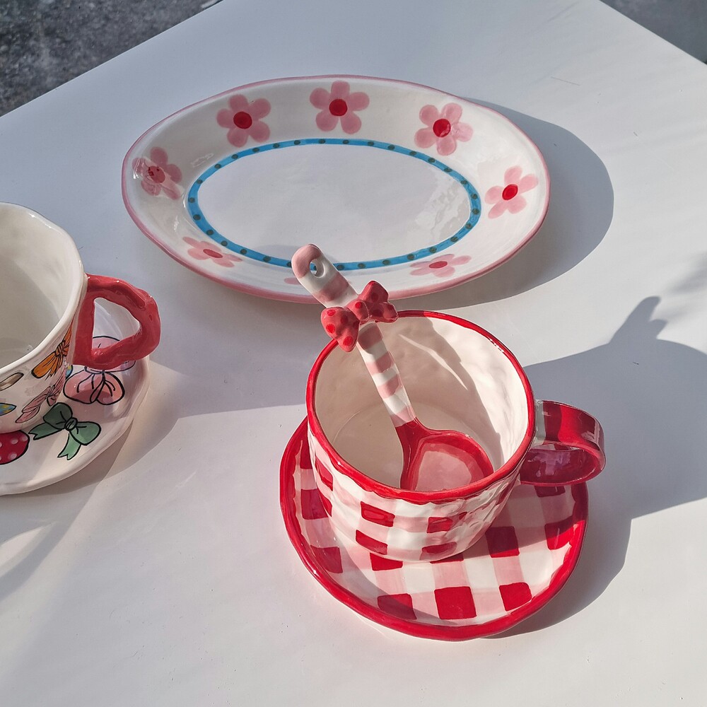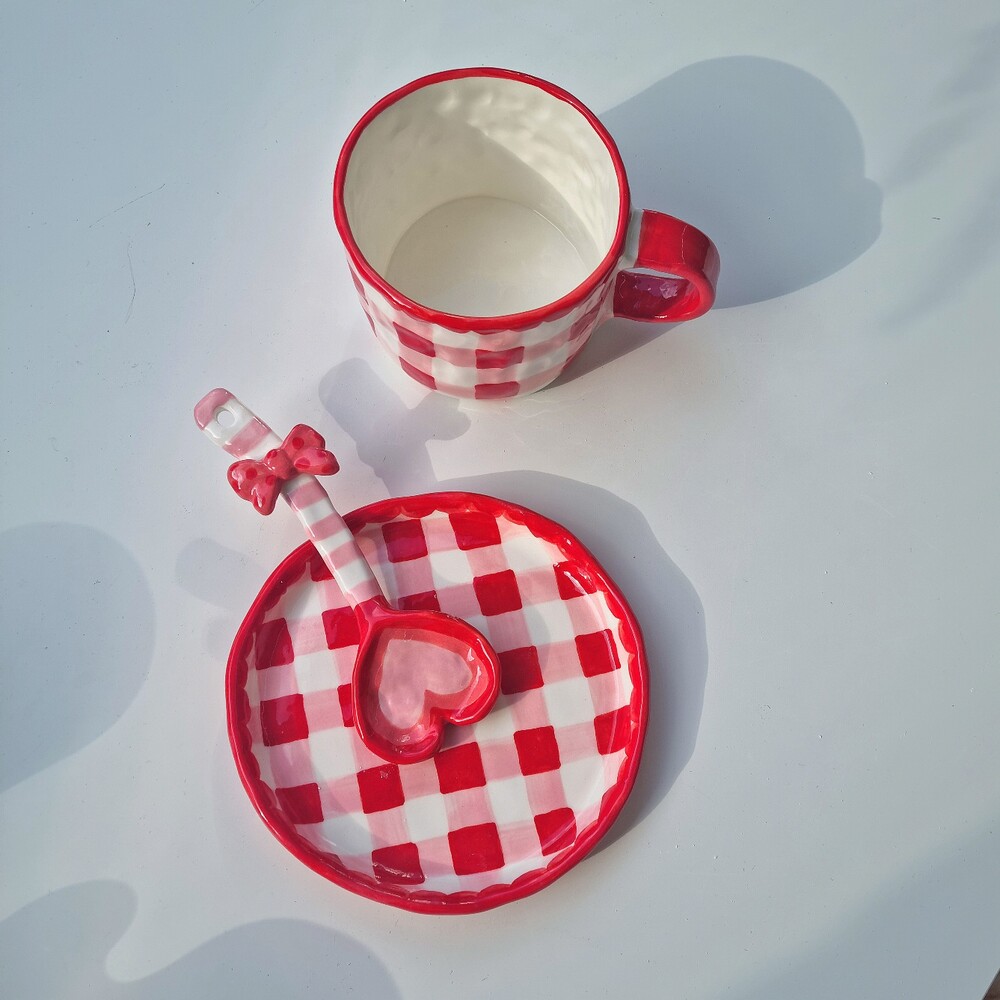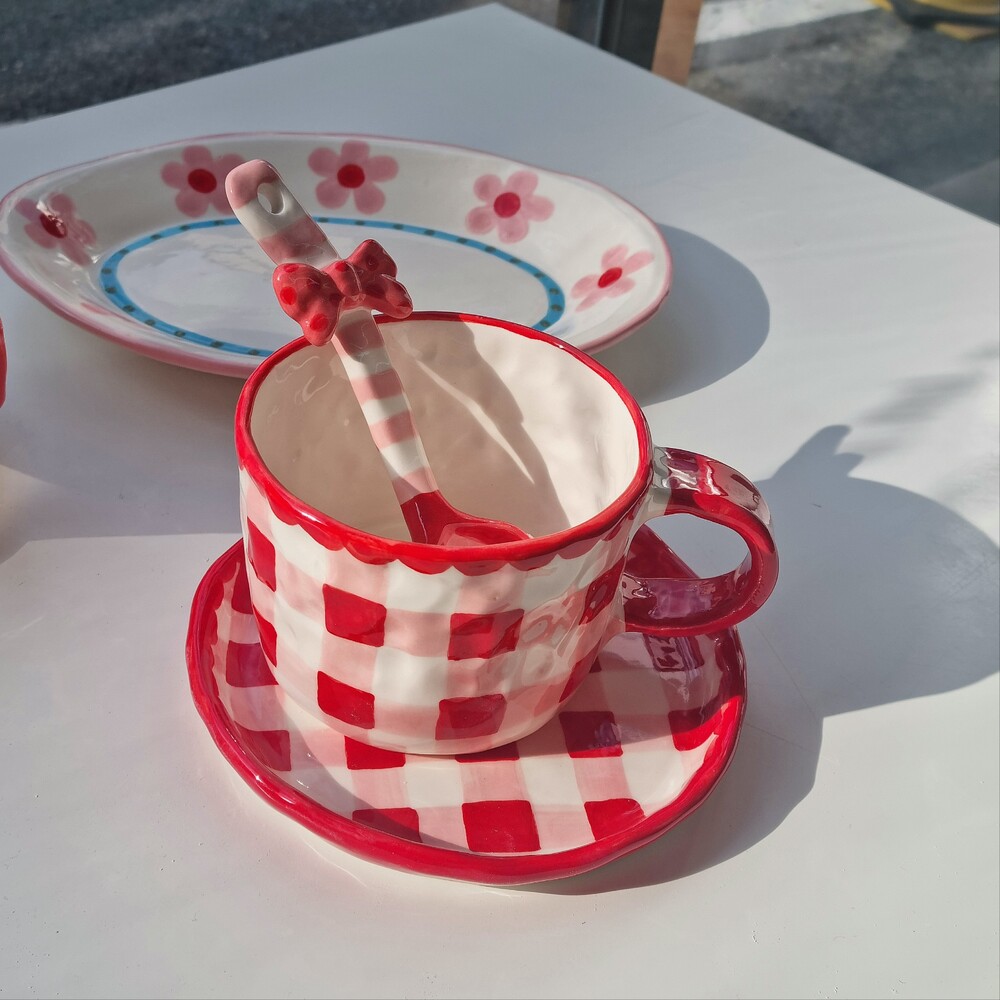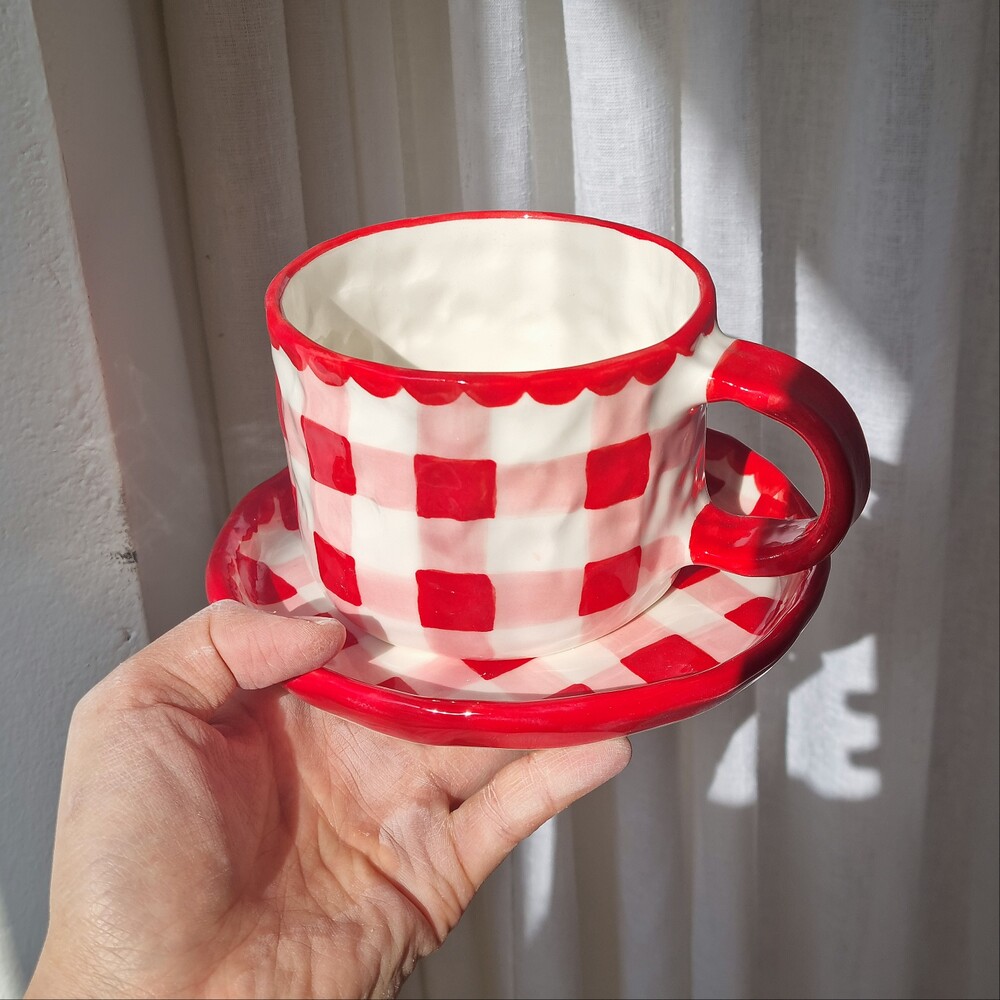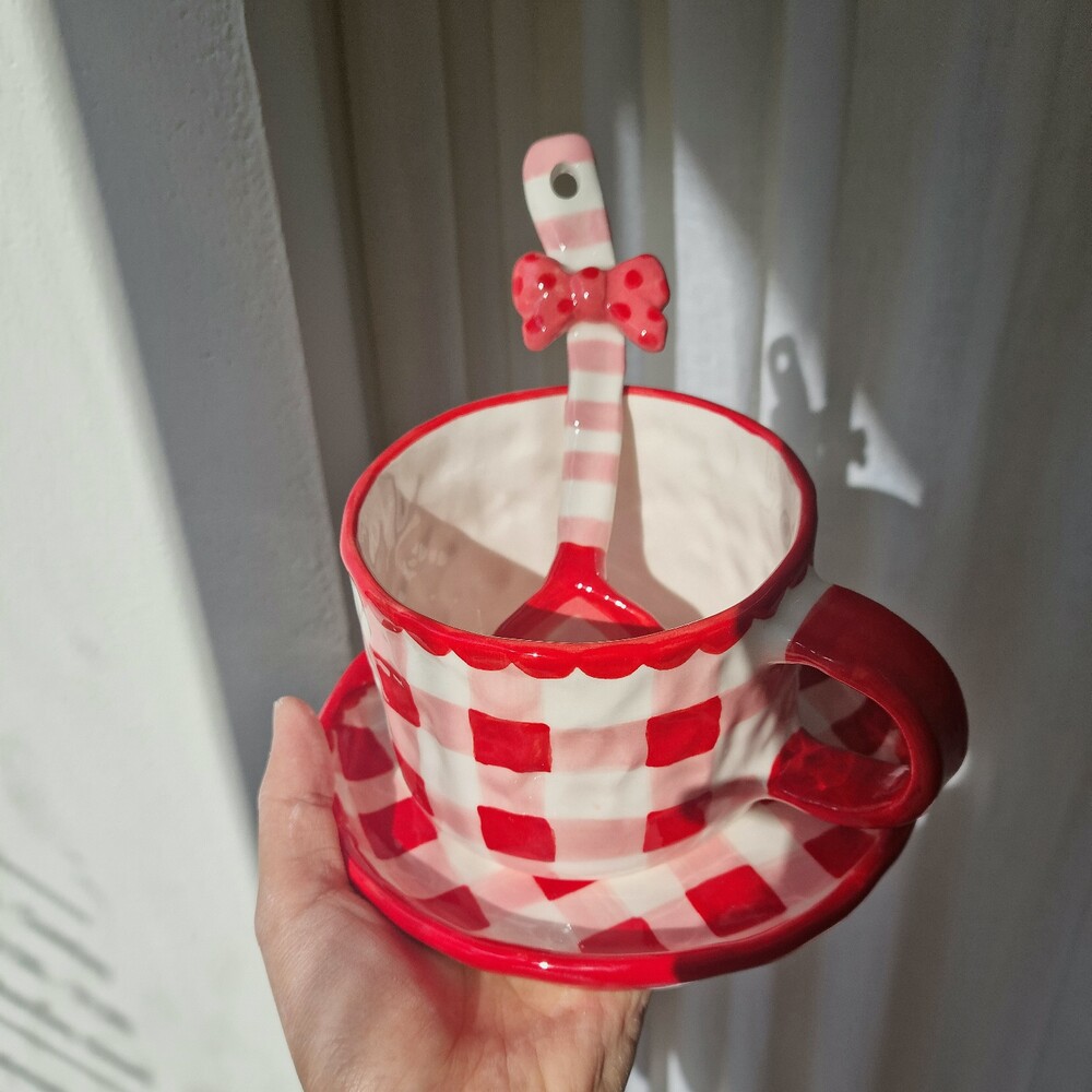 레드체크 커피잔세트