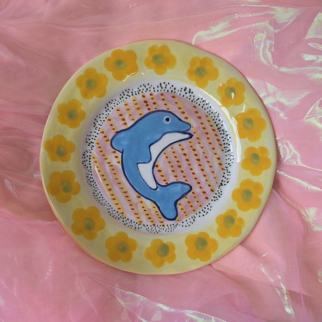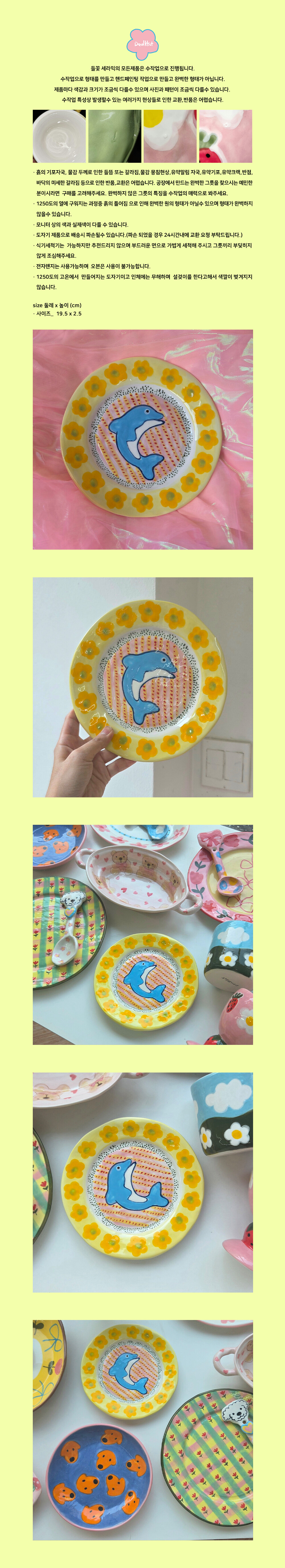옐로우 플라워 돌고래 접시